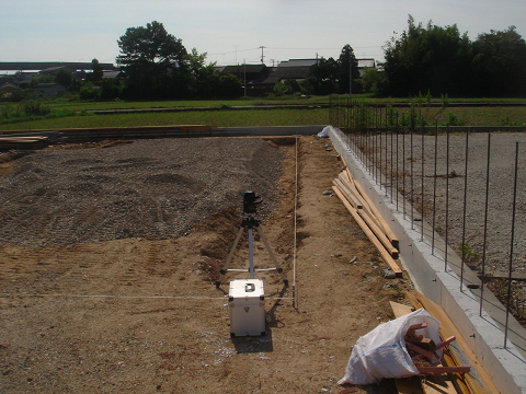 通常は基礎の外側の型枠完了後に基礎配筋を組み立てますが